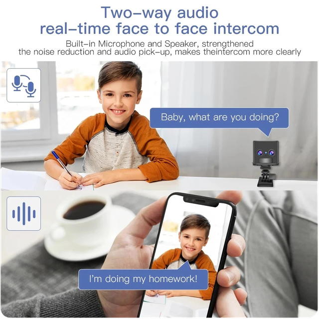Камера має вбудований мікрофон і динамік з технологією шумозаглушення. Ви можете спілкуватися в режимі реального часу — почути, що відбувається, і відповісти співрозмовнику прямо зі смартфона.