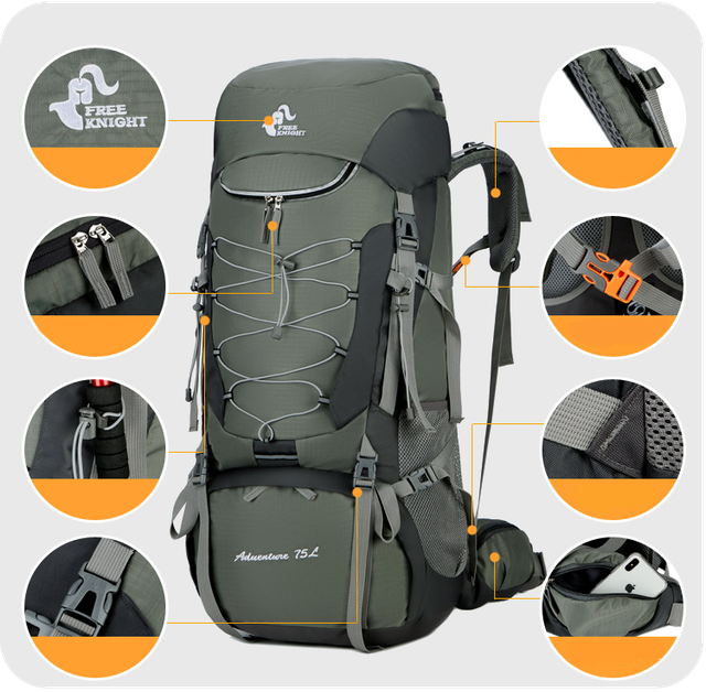 Рюкзак туристичний FREE KNIGHT Adventure Trekking, 75 літрів + дощовик на рюкзак