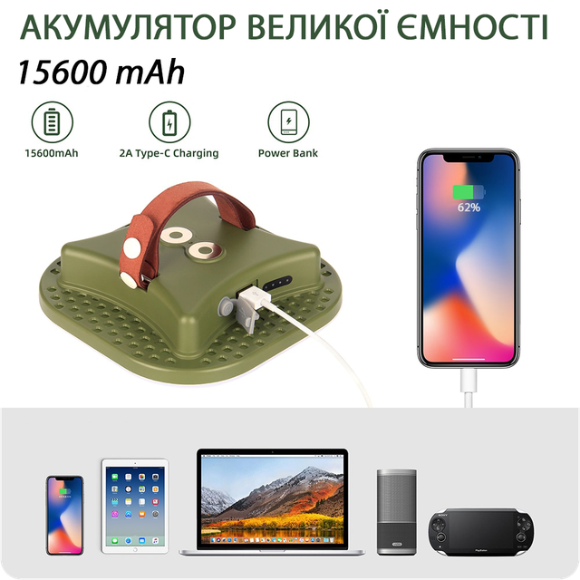 Світлодіодний LED ліхтар Unibrother, що перезаряджається | З роботою до 60 годин | 15600 mAh | 80W. Ліхтар має 2 джерела світла та режим SOS. Блок живлення для кемпінгу, що перезаряджається 15600 мАч: не тільки портативний ліхтар для кемпінгу, але і портативний блок живлення, який можна заряджати за допомогою USB-кабелю для зарядки. Unibrother працює до 80-230 годин у режимах з низькою яскравістю та ідеально підходить для активного відпочинку або відключення електроенергії вдома.