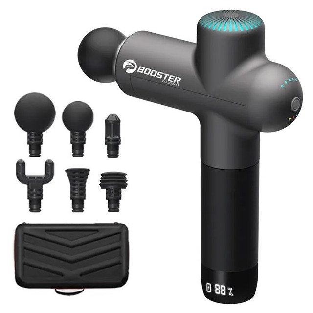 Високотехнологічний функціональний перкусійний ручний масажер Booster® надає чудову можливість самостійно масажувати будь-яку частину тіла. Використовувати ручний масажер можуть не лише спортсмени після інтенсивних тренувань, а й ті, хто хоче реабілітацію чи нарощування м'яза. Для тих, хто страждає від частих суглобових болів, масажний пістолет дозволить ефективно позбавлятися від больових відчуттів, впливаючи інтенсивними вібраціями на тригерні зони.