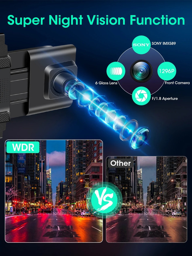 Дзеркало відеореєстратор оснащений двома камерами, одна з них знаходиться в задній частині дзеркала і має можливість регулювання як по вертикалі, так і по горизонталі. Задня камера виконана в класичному стилі, і її особливістю є сенсор від компанії Sony IMX 335, діафрагма сенсора 1.4 f.. Для порівняння, ці сенсори використовуються в камерах нічного відеоспостереження і навіть при абсолютній відсутності джерел світла ви зможете спостерігати за подіями.