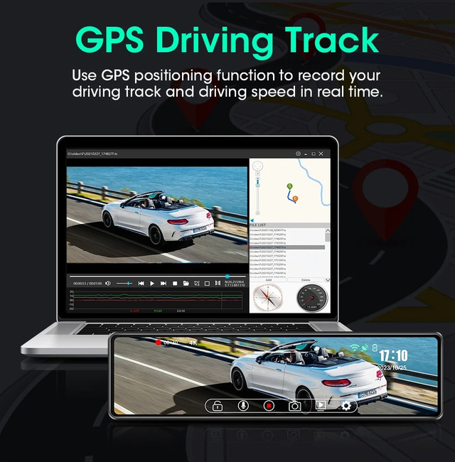 Дзеркало відеореєстратор Jansite T95D 11.26" з двома камерами | 4K + 1080P | Wi-Fi | GPS | Сенсорний дисплей