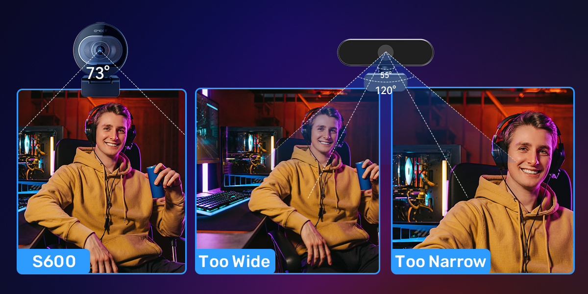 Занадто багато показано через надзвичайно широкий кут зору або занадто вузький, щоб навіть представити себе цілком? більше ні! Зробіть себе або свій фон ідеальним кадром за допомогою ширококутного кута огляду 73°.