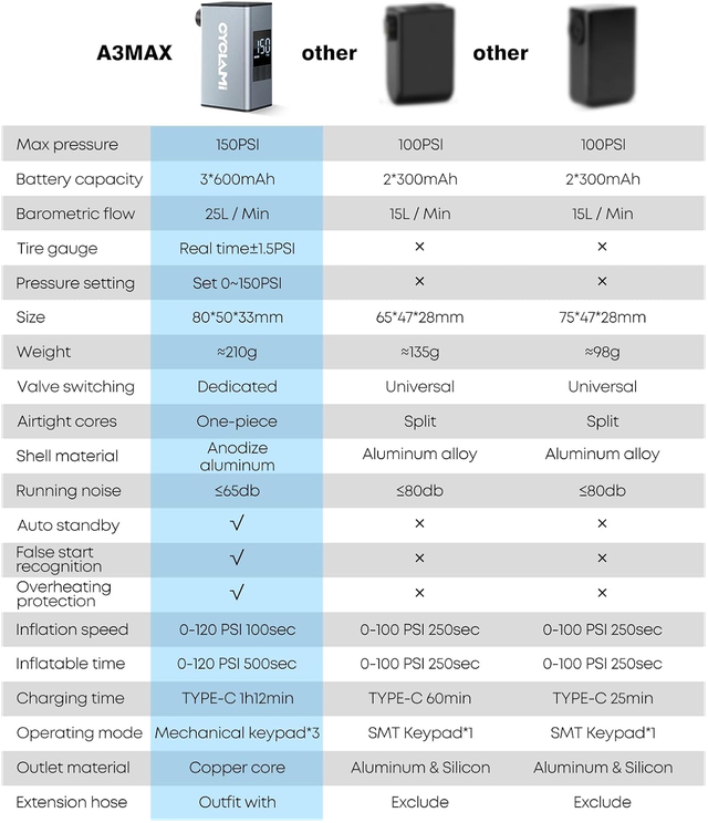 CYCLAMI A3 Max — це не просто насос, це надійність, стиль та інновації в одному пристрої. Візьміть його із собою в кожну поїздку, і забудьте про проблеми з підкачуванням шин. Замовте вже сьогодні й насолоджуйтеся комфортом з CYCLAMI A3 Max!