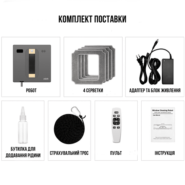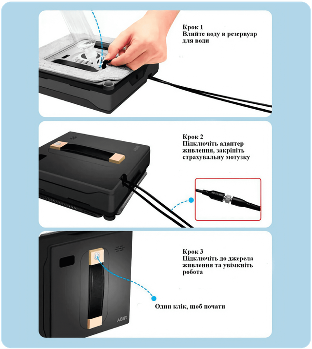 Інтелектуальний робот для миття вікон ABIR WD8 з розпиленням води | Bluetooth | Голосовий помічник